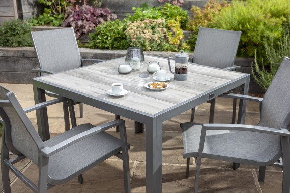 Hartman Hartman Georgia 4 Seat Square Garden Furniture ... from www.tgfc.co.uk Available in 4, 6, and 8 seat sets as well as the option. John lewis & partners henley by kettler rectangular 6 seater garden dining set, grey. Our large collection of aluminium dining sets are unique and modern to create a stylish place to dine alfresco in your outdoor space. Find the perfect patio furniture & backyard decor at hayneedle, where you can buy online while you explore our room designs and curated looks for tips, ideas & inspiration to help you along the way. Main features• casual dining aluminium outdoor corner sofa set• seats up to 7 people• arctic grey powder coated aluminium frame• water resistant fabric • cushion covers and fillings uk fire resistant• free weather cover included• 3 year warranty• scatter cushions not includeddimensions2 seat end sofa: Patio high top dining sets. Rathwood garden centre has 100's of garden sets from cast, metal, rattan and wood furniture. You can choose from aluminium dinning sets, to aluminium lounge sets or even social aluminium sofa sets.